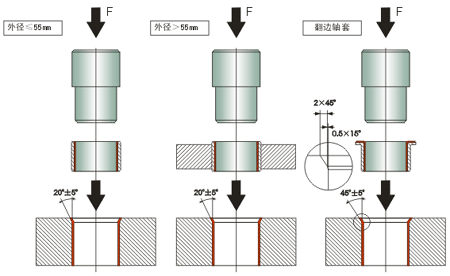 3. 裝配時應(yīng)采用芯軸慢慢壓入(建議使用油壓機),禁止直接敲打軸套以免發(fā)生變形。